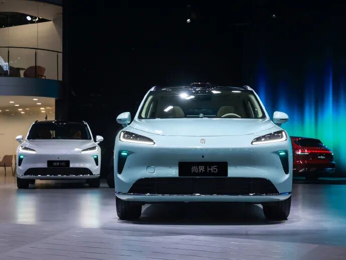 据了解,尚界H5采用鸿蒙智行家族设计语言,纯电版和增程版车型尺寸均保持一致,长宽高分别为4780/1910/1657(1664)mm,轴距为2840mm,定位中型SUV,采用2+3式的5座布局,全系标配鸿蒙座舱以及高配车型配备华为最新的辅助驾驶系统HUAWEI ADS 4。动力方面,新车提供增程版和纯电版两种动力选择。其中增程版车型搭载一台由上海汽车集团股份有限公司生产型号15FMC的1.5L发动机作为增程器,最大功率为72千瓦,CLTC综合续航里程超1300km;纯电版车型依据配置不同,提供最大功率分别为150千瓦和180千瓦的驱动电机,CLTC纯电续航里程最高为655km。