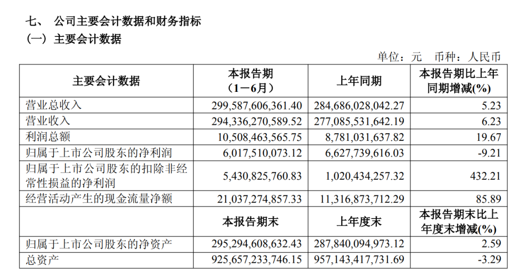 8月28日,上汽集团发布2025年上半年业绩显示。报告显示,2025年上半年,上汽集团营业总收入为2995.87亿元,同比增长5.23%;归属于上市公司股东的净利润为60.18亿元,同比下滑9.21%;归属于上市公司股东的扣除非经常性损益的净利润为54.31亿元,同比增长432.21%。