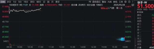 港股小幅下跌。个股方面,快手开盘涨逾6%,截至发稿,仍涨超5%。小米集团震荡走高,一度涨逾3%,截至发稿,上涨超2%。
