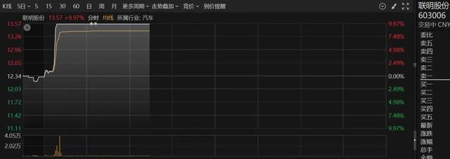 汽车板块早盘活跃,联明股份等开盘后直线拉升涨停。